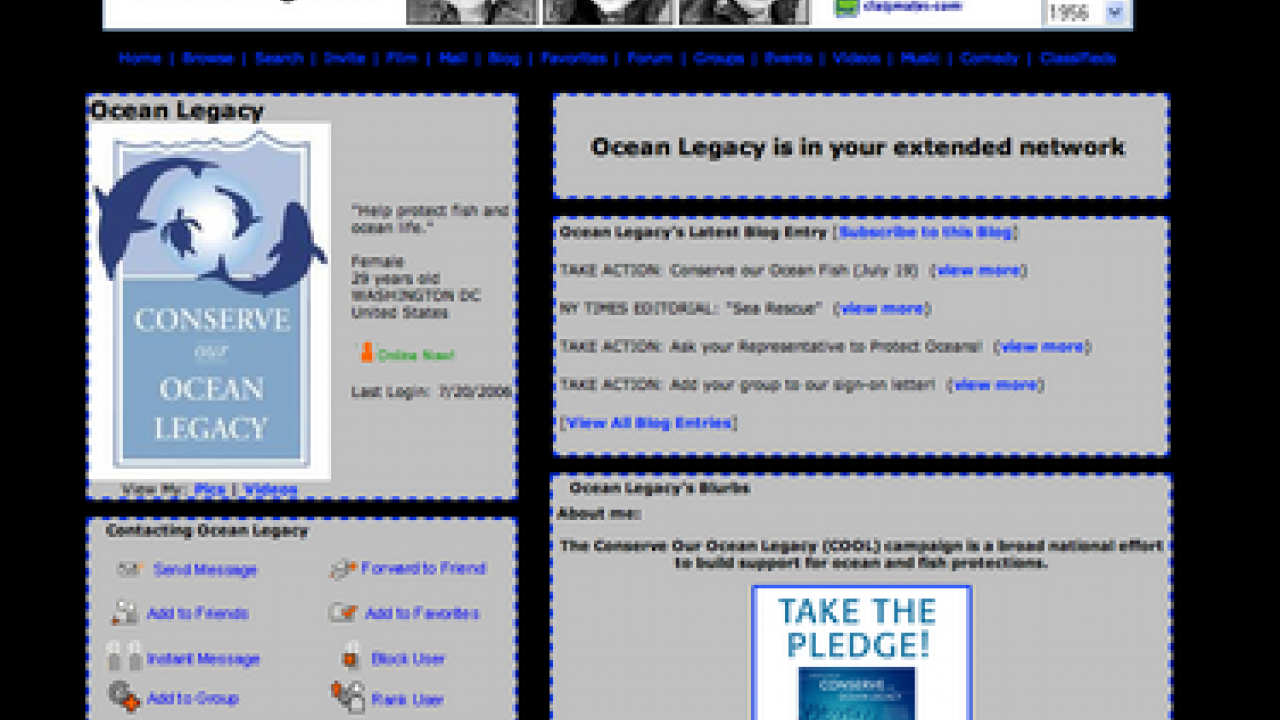 What do Oceana, Oxfam America, and Greenpeace all have in common? Well-among other things-they are all nonprofits that have tapped into the social networking world of MySpace.com to attract new supporters. The website, which is best know for giving exposure to lesser known bands and helping teenagers stay in touch with their massive amounts of online "friends," has proven itself to not be limited to these uses. Where MySpace is limited is in its own site construction, which allows groups to set up pages that are usually clumsy, at best. The upside to its simple construction is that you don't need a programmer to set up a profile--anyone can do it. If you want to learn more about this phenomenon, check out this interview with Pete Cashmore of Mashable.com or this article by Ken Goldstein of the The Nonprofit Consultant Blog. If you're an environmental group looking to enhance your communications with the public and stay on top of the rapidly-shifting communications landscape, do yourself a favor and check out Green Media Toolshed.