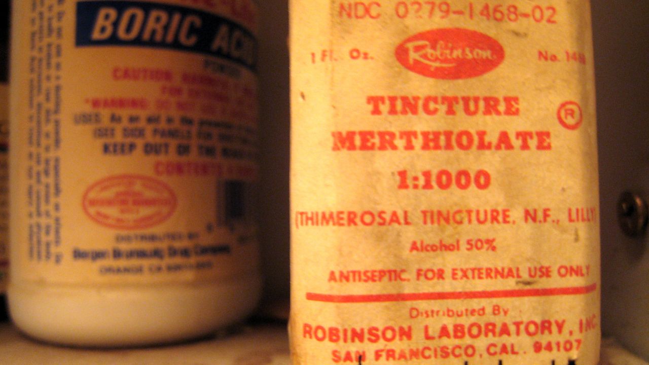 Special to Enviroblog by Sonya Lunder, EWG Senior Analyst Mercury was on my mind a lot last December, but imagine my surprise to find out it was also in my medicine cabinet! Pawing through my mom's cabinet over Christmas I saw a suspicious item on the top shelf. It was a dust-covered vial of Merthiolate, once a common skin antiseptic made of thimerosal. Mercury was a common ingredient in skin antiseptics of the past, and prior to 1999 was widely used as a preservative in vaccines. Mercury is still found in some eye drops, ear drops and nose sprays. Since then FDA has asked manufacturers to remove mercury from kid's shots, but it is still used in several shots--particularly the "multi-dose" Fluzone, Fluvirin, Afluria and FluLaval shots. You should ask for a "preservative-free" shot and see a complete list of other mercury-containing shots for adults here: My parent's Merthiolate was half full and had a pricetag for $0.44, so clearly some of the old stuff sticks around for a while. If you find it make sure the lids are secure and call your local government or check Earth911.com to find safe disposal locations. p.s. The Boric Acid sitting beside it is also suspect. Perhaps I'll post on that later.