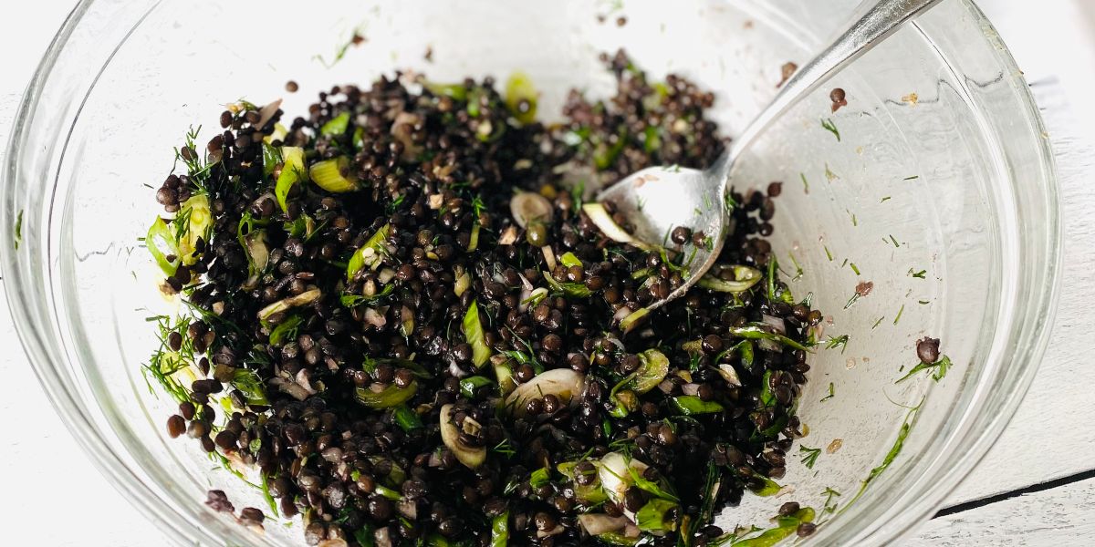 2. In a medium-size bowl, combine oil, garlic, shallot, dill, scallion, capers and pepper. Once lentils are done, add to bowl and toss. Serve on crackers, toasted bread or simply eat as a salad.